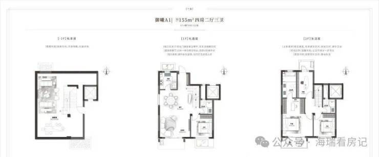 * 项目容积率约为1.55,是标准的低密度社区。主打四层叠加别墅,部分户型设计了约5.2米挑高的地下室和独立花园,产品形态在区域内有一定特点。