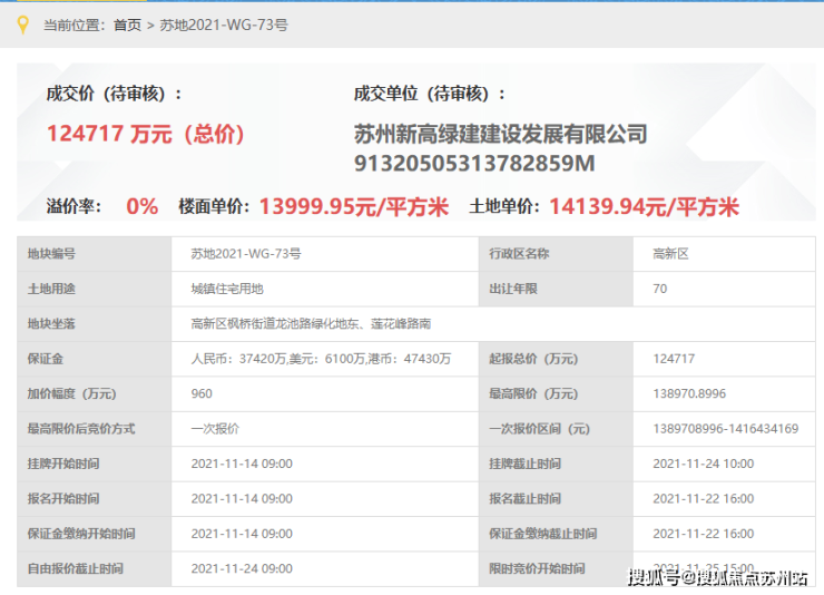 山语澜院,即,苏地2021-WG-73号地块,位于高新区枫桥街道龙池路绿化地东、莲花峰路南,是2021年11月25日,苏高新以底价124717万元竞得,成交楼面价14000元/平。