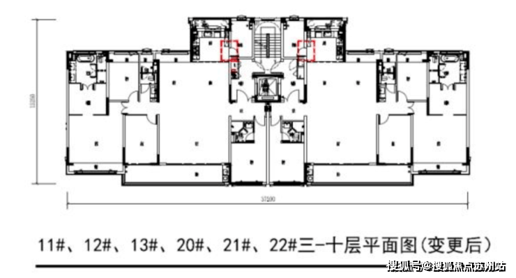 洋房11-13#、20-22#平面图如下,一梯两户: