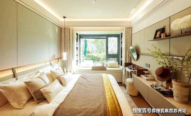 每一间卧房皆设飘窗,为每一颗热爱生活的心,预留一方浪漫天地。主卧参考酒店式套房,拥有衣帽间和独立卫浴间,尊重日常生活的私密感。与此同时,卫浴间的飘窗附设壁龛,可用于收纳,增加实用性。