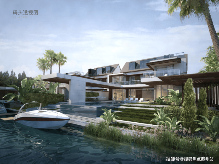 项目从此前曝光的设计方案就可以看出亮点,每一排别墅前都有一条渠道,引入水系,可以停游艇。