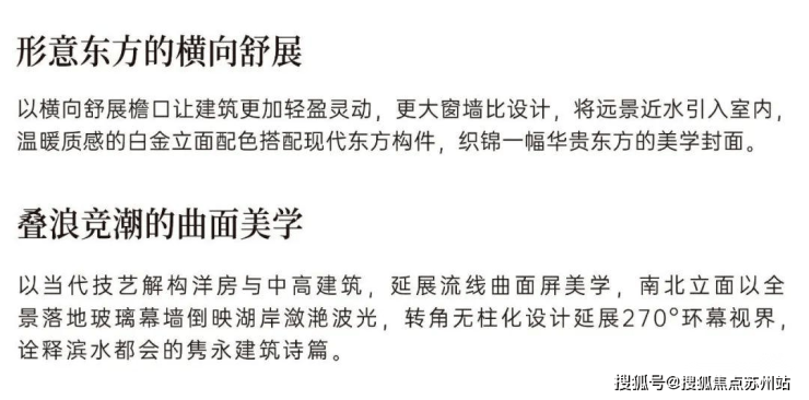 依凭半岛三面水岸的天然资源,以"一堤三面湖"和"水街襟两园"设计笔触,实现滨水互动、开门见水的场景体验;融汇吴门画派、苏州园林造园理念,营造出一座温润如玉的流动庭园。这种苏州湖居设计理念,让每一处房产都成为艺术品。