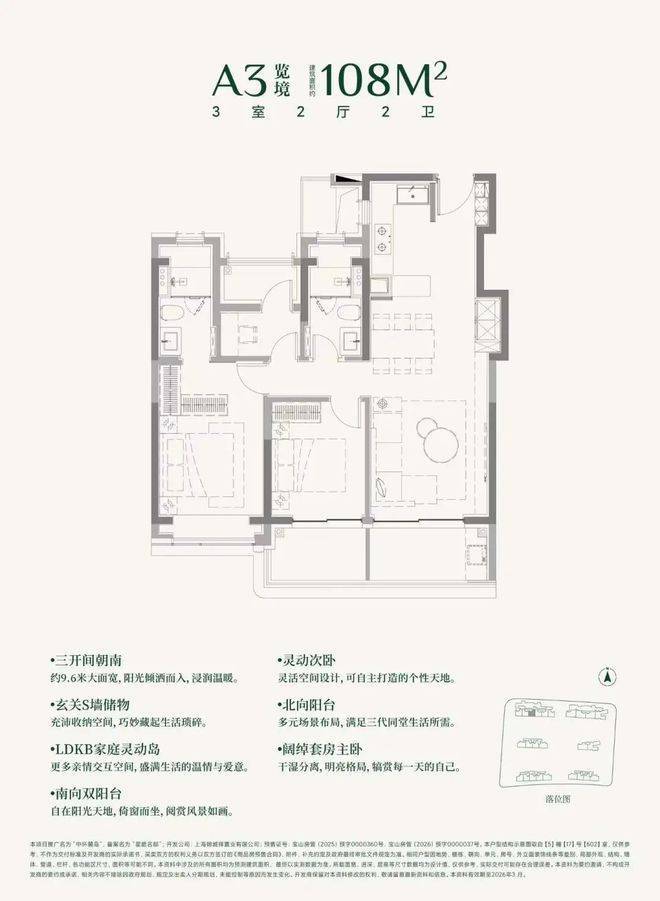 建面约108㎡3房的三阳台面积就高达约13㎡.(阳台仅附赠一半面积)