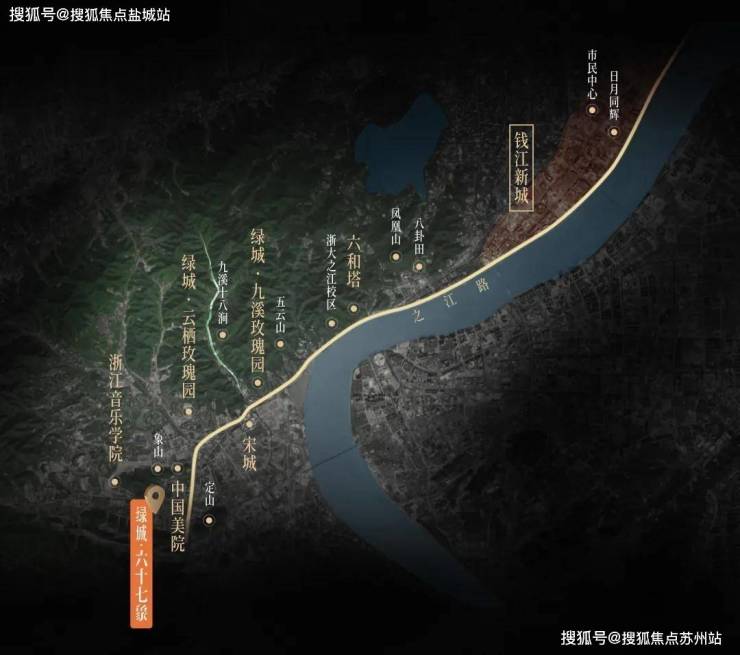背枕西湖群山,面向钱塘江水,蜿蜒其中的之江大道,串联着岁月的故事与未来的憧憬。从承载着历史沧桑的六和塔,到闪耀着现代光辉的钱江新城;从古木参天的九溪玫瑰园,到洋溢着艺术气息的中国美院象山校区,六十七象安然静卧,沐浴着城市发展的璀璨辉芒。