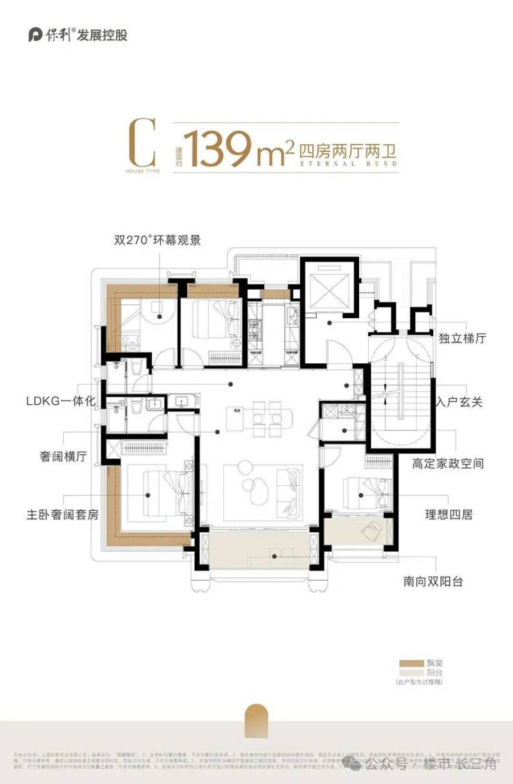 通过“全屋飘窗(全赠送)+双南阳台(半赠送)+独立电梯厅”的精妙组合,这套139㎡户型的实际得房率逼近95%,远超市场75%的平均水平。