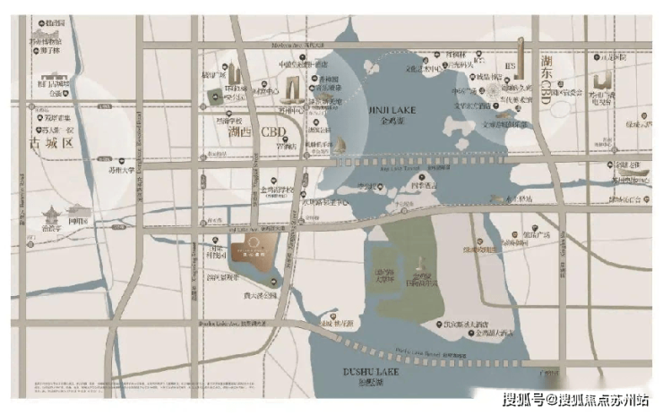 地段优势:位于金鸡湖与独墅湖之间,一面城市三面湖的半岛谧境,出繁入静的湖居体验
