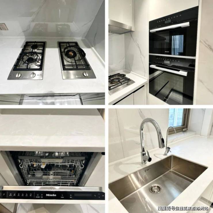 厨房电器采用美诺的5件套(抽油烟机,燃气灶,洗碗机,蒸箱和烤箱),橱柜品牌是博洛尼,弗兰卡水槽搭配抽拉式水龙头相当人性化! 世纪臻邸售楼处电话:400-902-3966