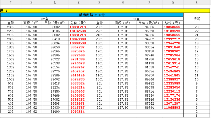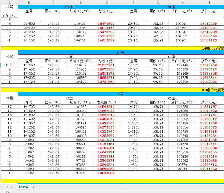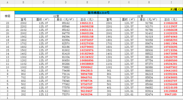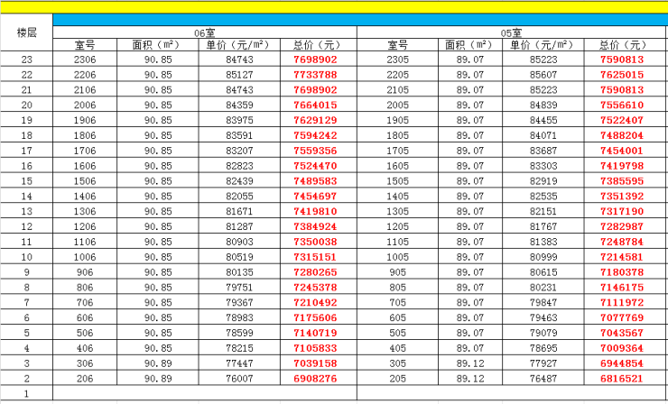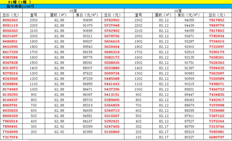最新一房一价表: