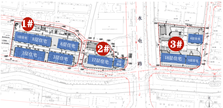 一期1#地块:规划有17、18层高层住宅,有5-8层的洋房,也有3层的别墅产品,水电路西侧还有部分商业。