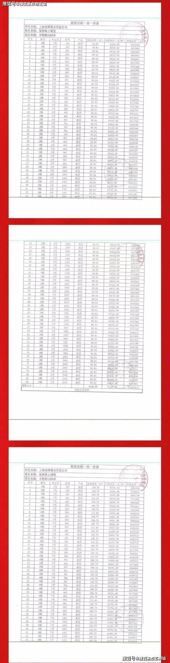 上海宝山【保利海上瑧悦】一房一价表: