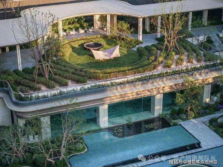 再配合建筑的曲线流动感、小池塘、溪涧、不同形态的植被