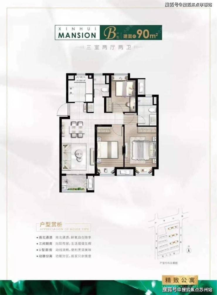 ①86平(三室两厅一卫)边套户型,三面采光