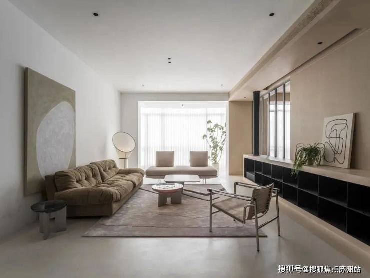 客厅整体布局遵循简洁自然的设计风格,大白墙与浅卡其色调背景墙相结合,清爽匀净与温暖和煦融合得恰到好处,构筑让人舒缓放松且具有温度的居家空间。平面吊顶、无主灯设计、微水泥地面……扩大空间的视觉效果,增强整体感,结合充足采光,让一家人使用频率最高的客厅场所明朗开阔,居住其间,心情也更加舒爽。