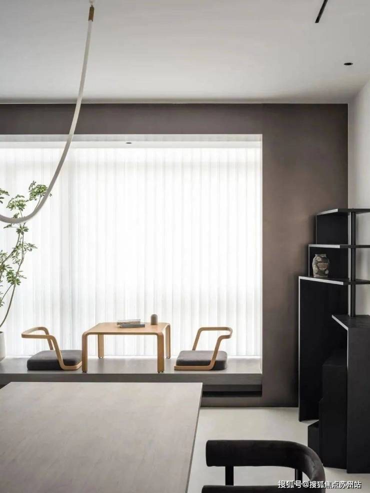 北阳台利用起来改造休闲茶室,加高地台与餐厅区域划分开,打造开阔通透的休闲茶台,一方小几、两把座椅,无论冬夏,携着落地窗景闲谈喝茶,与家人与好友,畅所欲言,言笑晏晏,怡然自得。