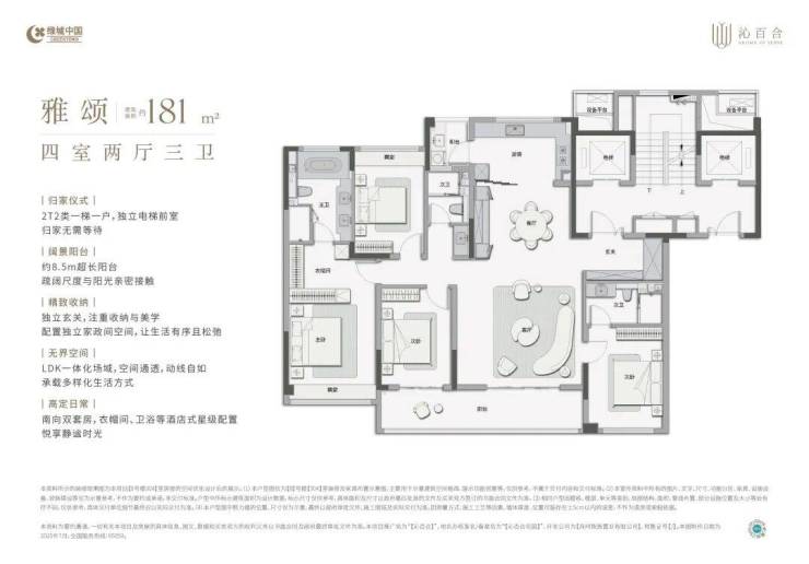 归家尊崇: 从气派的大门,到地上地下精装的归家大堂,回家的每一步都充满仪式感和尊贵感,体现了绿城·沁百合作为高端楼盘的细节追求。