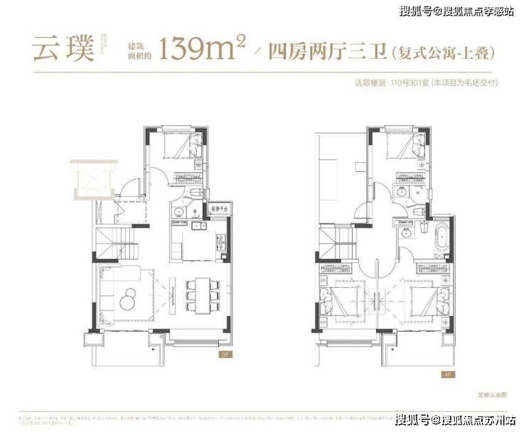 上叠户型4房2厅3卫,三层会客区,四层居住区,阳台+露台+飘窗设计,附加空间非常大,在别墅类产品中实属罕见!