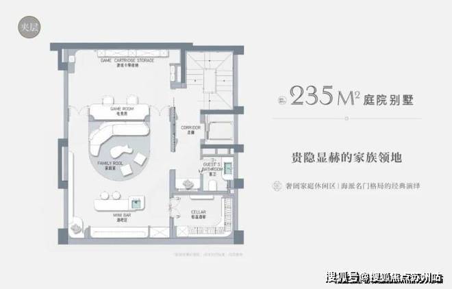 以建面约235㎡的庭院别墅样板房为例,户型附赠地下室、庭院、露台、阁楼空间,附赠面积达到户型总建面的60%左右,市场上少之又少!