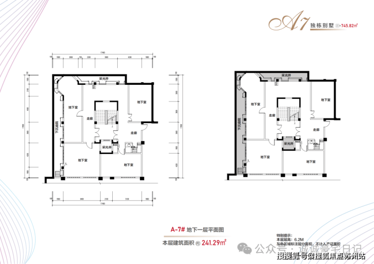 布局:地上三层(4.5米层高)+地下一层(6.2米层高)+900㎡花园