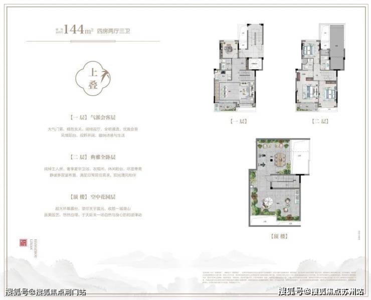 【主力户型】伴山叠院建筑面积约144㎡、城市合院建筑面积约187—195㎡