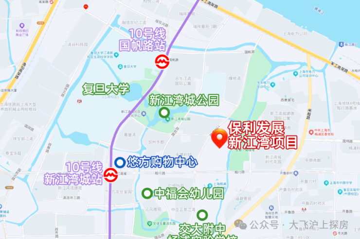 此外项目南侧直线距离约500米,上海交大附中杨浦实验学校将于2027年9月落成启用。