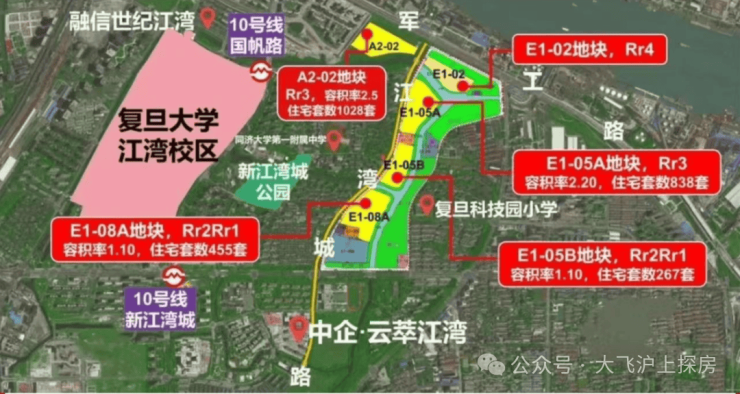 E1-08A地块位于新江湾城北侧,直线距新江湾城站约1.2公里,地块容积率仅约1.1,限高约20米,预计将是洋房和联排的组合。其土地面积约5.71万㎡,建筑面积约6.28万㎡,出让总价为37亿元,折合楼板价约5.89万/㎡,住宅套数下限为455套。