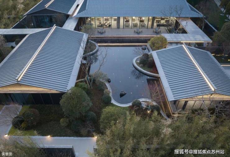 项目建筑风格传承苏式的江南人居特色,饰以典雅灰的立面颜色,街巷相应、园邻相生。以现代手法演绎,汲取苏州园林精粹,构筑“一轴六庭八景”,呈现匍匐在绵延山麓的四季姑苏的居住情景