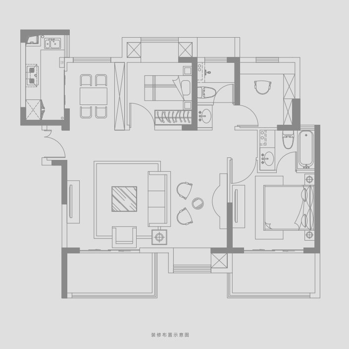 碧落·盛境 | 约138㎡:五开间朝南,餐客一体横厅,主卧套房,南北双阳台,奢阔尺度尽显大气。