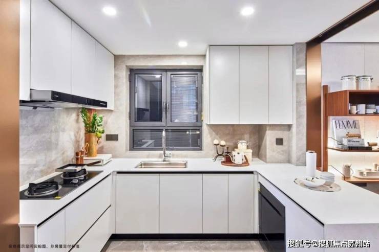 其次,厨房也配齐了品牌燃气灶/油烟机/橱柜三件套,增配洗碗机,再加上单体大水槽、抽拉式水龙头、金属玻璃门,在单价3万级的楼盘中属实难得。