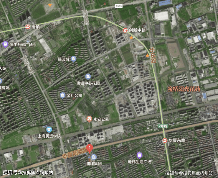 佳怡华庭项目位于川沙和唐镇交界处,和唐镇仅相隔一条华夏东路,距离2号线华夏东路站约1.3km。