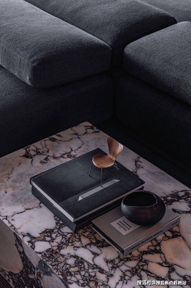 室内的家具极具考究,在黑色的背景中,每一件家具都有着自己的轮廓和比例,以清晰的美感呈现着家的包容性,光线巧妙的成为了室内的美之源泉,点亮了黑色之美,也塑造了黑色的神秘感。