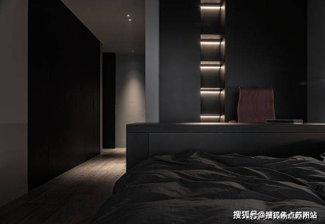 纵观整体不难发现,室内有着极简的影子,相较于白色空间的纯粹,这个黑色的空间蕴藏了更多的情绪力量,在热情的呼应下,逐渐展现了黑色自带的温暖。