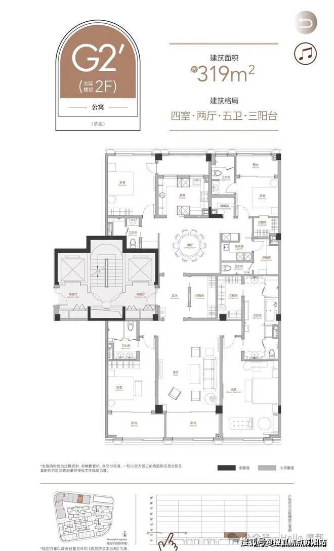 别墅层数:地上四层,地下两层,其中四层2.2米以下是赠送面积。