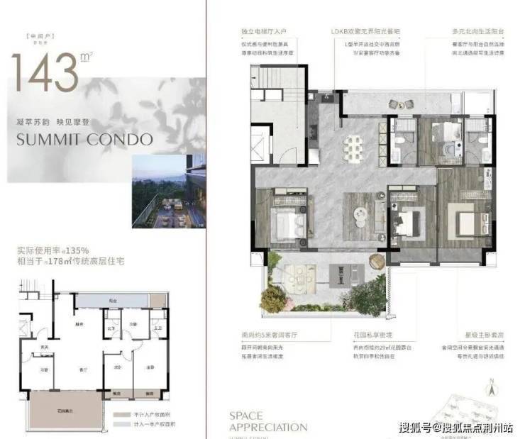 🥇建面约143㎡:欢聚无界约29㎡花园露台实际使用面积相当于传统住宅185㎡传统高层住宅