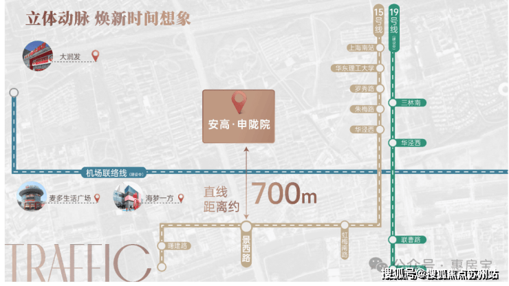 在未来梅陇将打破交通单一现状,围绕地铁15号线、19号线(在建)、23号线(在建)、机场联络线四轨换乘优势,与徐汇快速切换,开启多维立体交通时代,居者于此优享高效复合的生活方式。