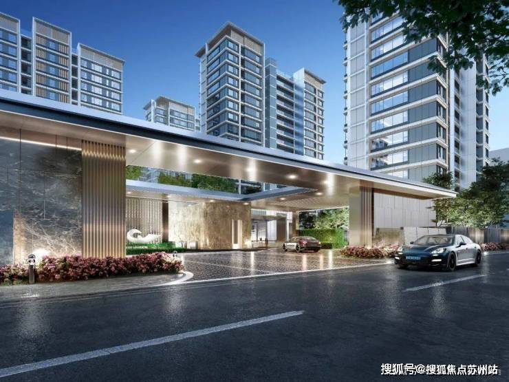 尺度大气的现代风格门头,入口展现艺术水苑、叠水瀑布以及层级绿化,彰显归家仪式感。