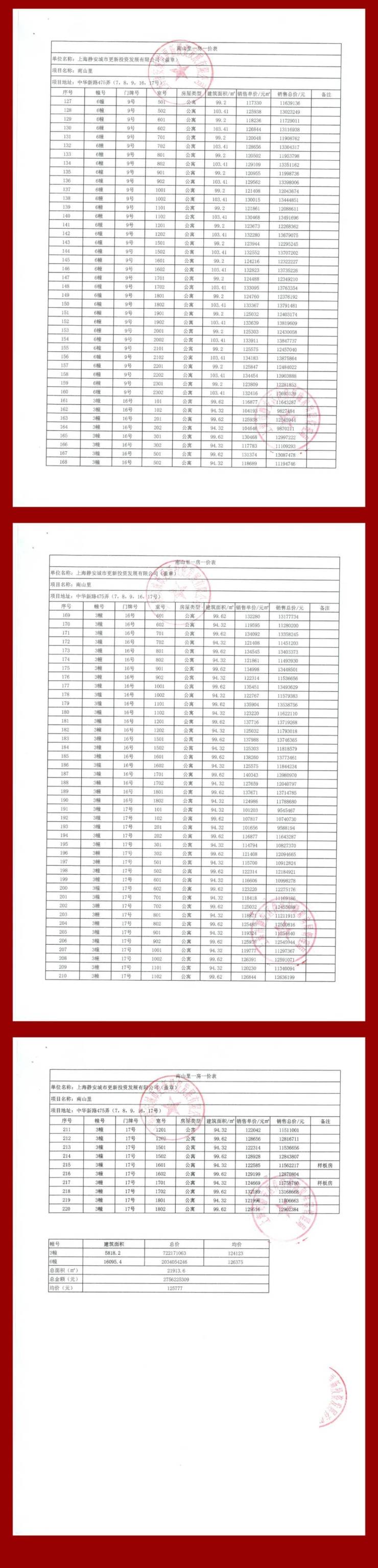 最新一房一价表: