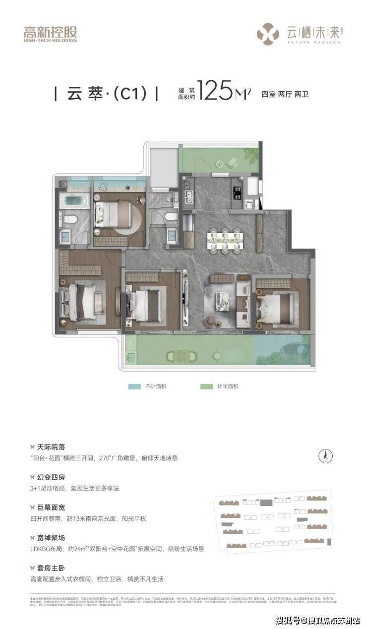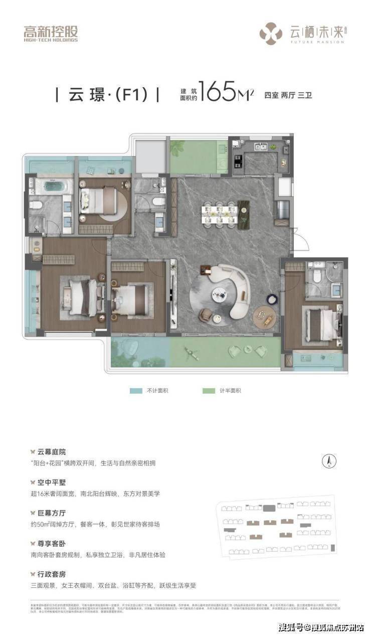高实得率改善精装四房主城难得约125-165㎡全四房改善洋房,以洋房高得房率为基底,叠享空中花园+飘窗(全赠送)、南北双阳台(半赠送)等多维不计容空间,以最高超100%有效空间增值,重新定义改善型居住标准。