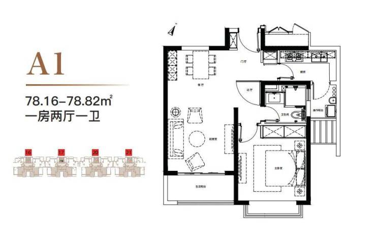 1房这个户型还可以灵动改为2房(可参考现场样板间),对于单身贵族或年轻小家庭来讲,总价门槛低,非常适合上车!