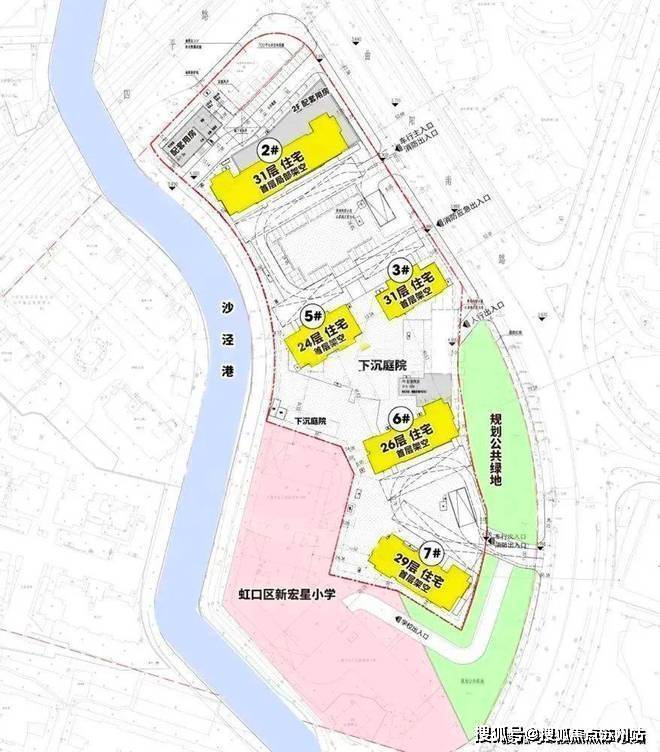 地块除了紧邻瑞虹的商业,南侧是新宏星小学,西南侧是招商云玺。