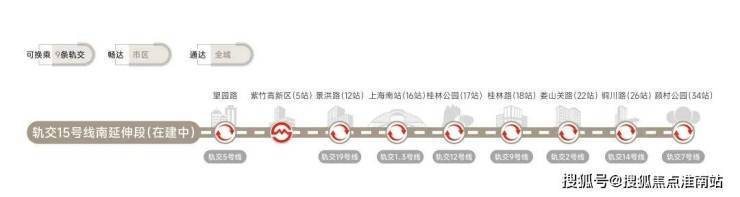轨交网络:5号线、15号线南延伸段(在建中)、市域嘉闵线南延伸段(规划中)、沪乍杭高铁(规划中)及南枫线(在建中)