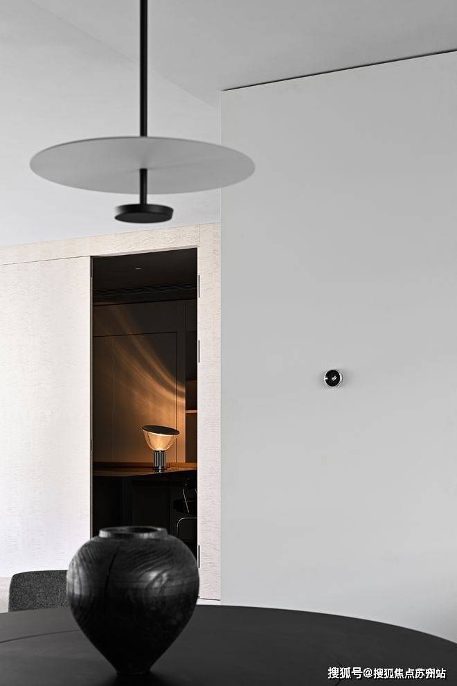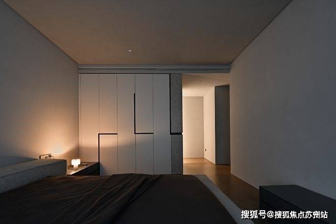从客厅行至卧室,光线也由明转暗,携手人们渐入佳境。温暖柔和的光线呈点状晕散,柔顺迂回的线条在暗影中浮现,朦胧暧昧的氛围大面积散开,为夜色中的好时光作陪衬。