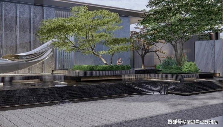 第五重:下沉庭院打造一体式景观,墙面流水至地面,结合水中花池营造出纯粹的自然之境。
