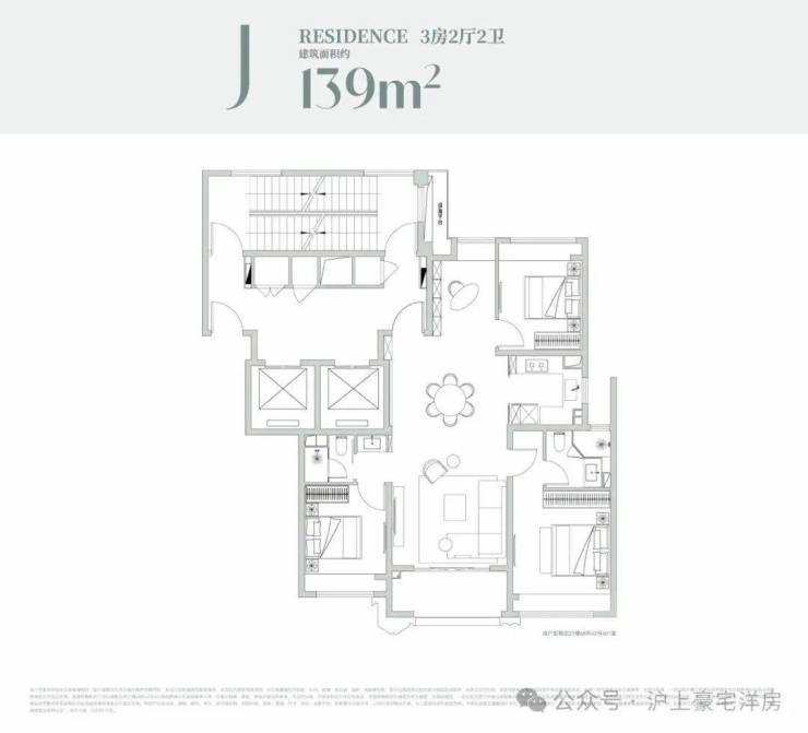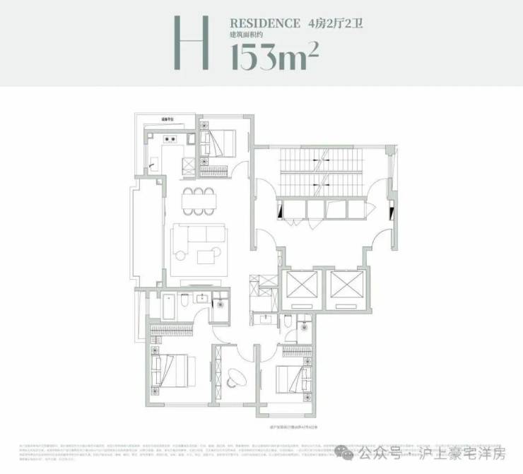 建面约237㎡的四房两厅三卫大平层,整体以奢阔尺度和舒适体验为核心,客餐厅一体化横厅设计连通南向观景阳台,形成开阔通透的社交核心区,既满足家庭日常互动,也能从容应对商务宴请等多元场景;全屋采用多套房布局,主卧配备步入式衣帽间与独立卫浴,两间次卧也均为套房设计,充分保障每位家庭成员的居住隐私与舒适感,同时中西双厨的配置兼顾了中式烹饪的实用与西式轻食的社交属性,加上独立玄关的归家仪式感、多飘窗的空间拓展,以及保姆间与居住动线的完全分离,从细节处打造出兼具尺度感与人性化的高端居住体验。
