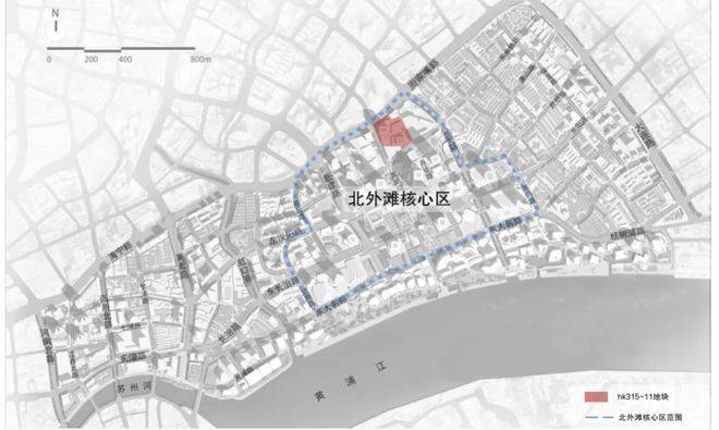 地块位于北外滩核心区,东至现状丹徒路,南至hk315-07地块和规划东余杭路,西至hk315-14地块,北至hk315-15地块和景泰大楼,与碧云北外滩直线距离仅约100米。