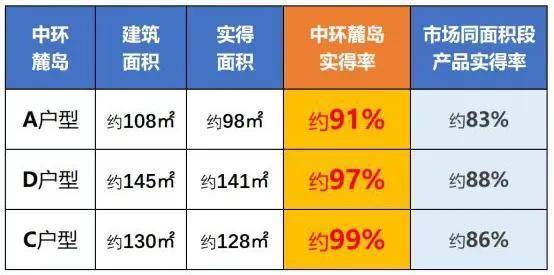 项目每个户型的实得率都比现有的新房都高出了约8%-10%,具体如下: