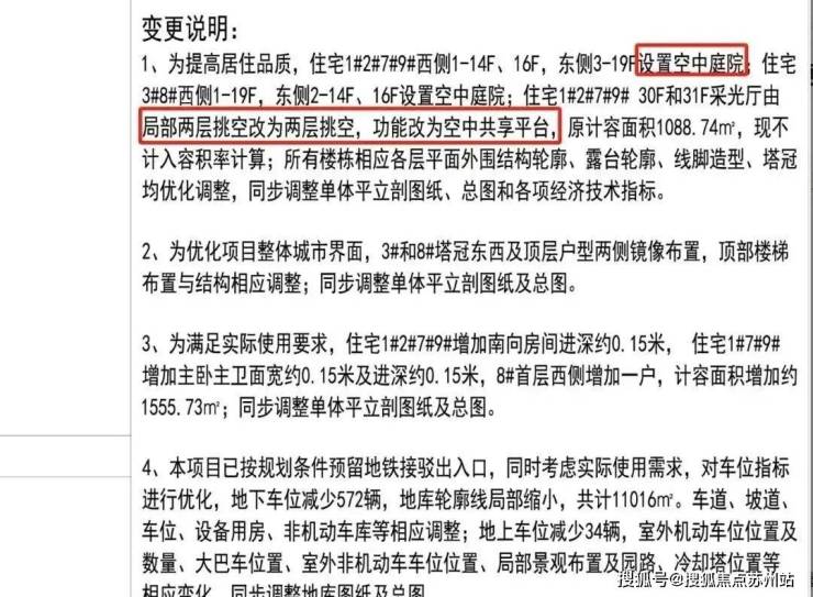从变更说明来看,变化还是比较大的,其中比较明显的就是部分楼层增加了空中庭院,部分立面也由玻璃变更为铝板+玻璃+金属等!总的来说,品质感上升了,部分楼层也变成了第四代住宅!这也是苏州首个超高层做了第四代住宅的!