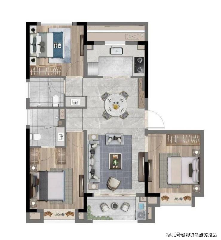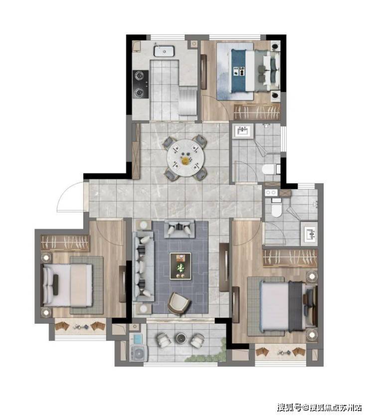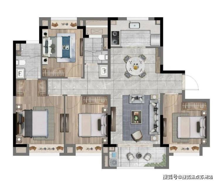 产品面积段在95-120㎡,均为三房、四房设计,共计5种户型可选择。