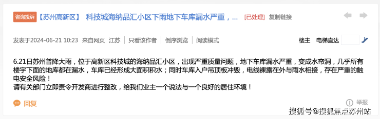 近期有有多位华润科技城项目的业主在线投诉,其入住小区后,经历着:地下车库大面积严重漏水,顶板、电线掉落等问题,