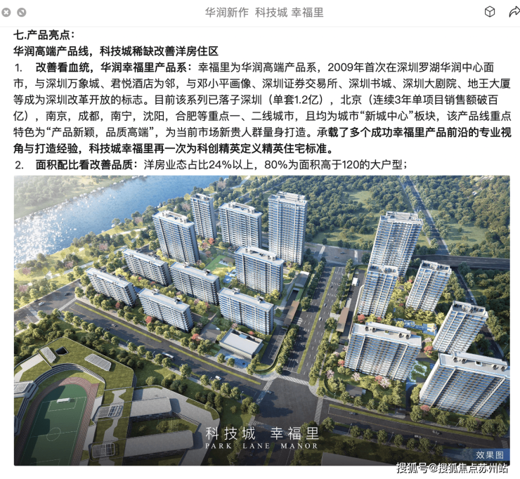 华润科技城幸福里由保利、华润、融信三家联合开发,其中融信由于债务问题已经退出,目前是由华润置地进行操盘运营,产品也是由华润置地打造,物业公司: 保利物业,其地理位置在科技城不算优越,由于其近期超高的性价比,也有部分客户选择了那里。