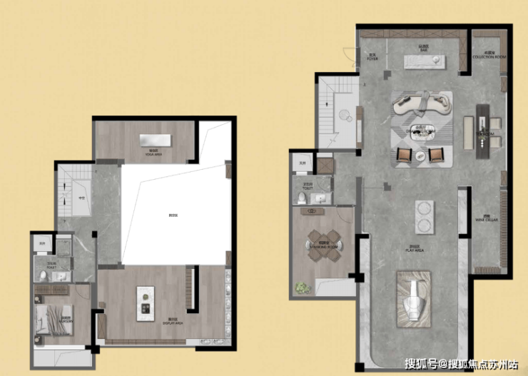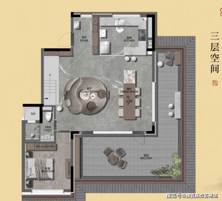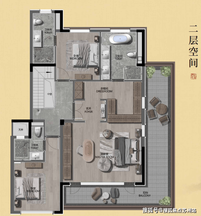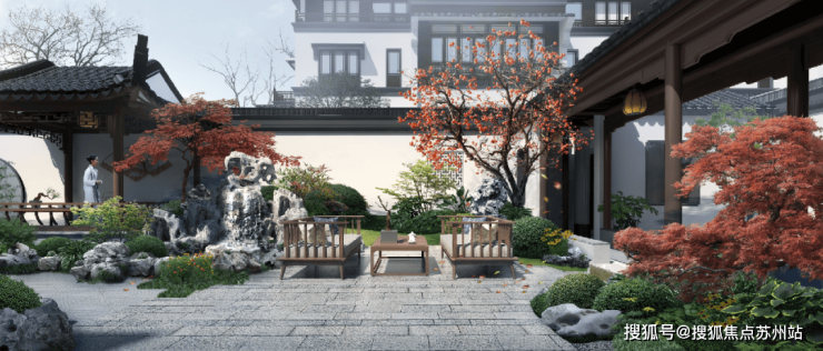 3重入户礼序:未名门→庭院(假山叠水、连廊)→玄关。